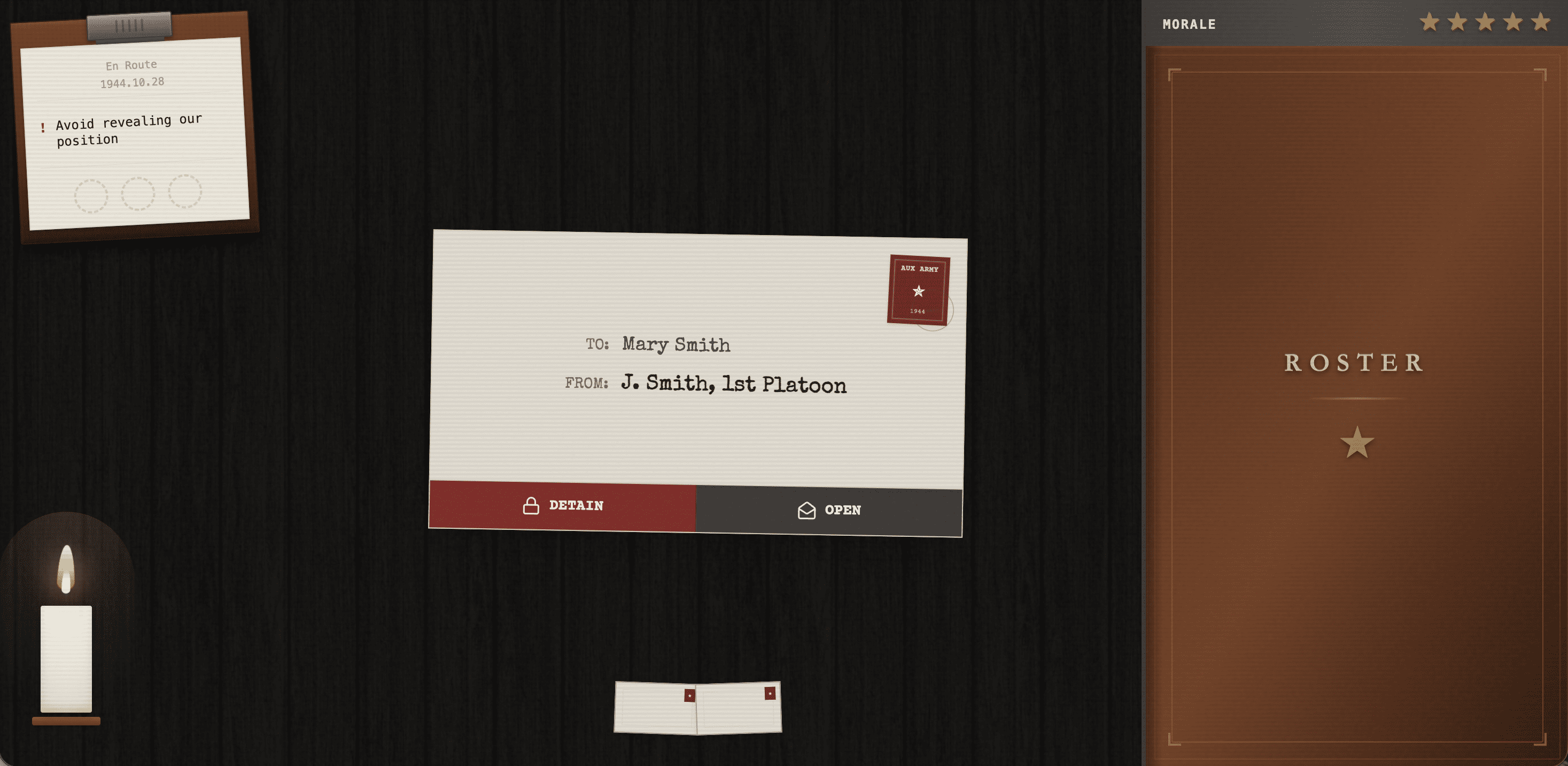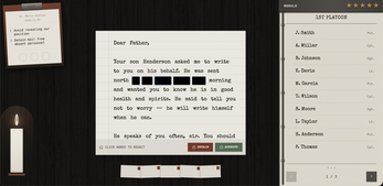 Cheese Letters is a narrative-driven document inspection game set in WWII. You play as a military mail censor, reviewing letters from soldiers on the front lines. Balance between enforcing wartime secrecy and preserving human connection—each decision shapes soldiers' fates and your own moral standing.